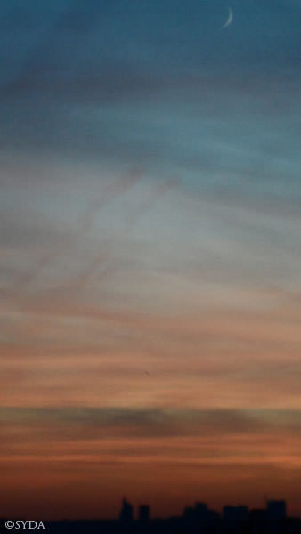 Since there are a lot of trees in my neighborhood, I was unable to see the moon. So, I took a ride to a place on top of a hill, with an almost 360 degree panoramic view. Upon arriving there, I started to feel very peaceful. The blue sky, tinged with the sunset’s orange hues, encircled my being with a welcoming hug.